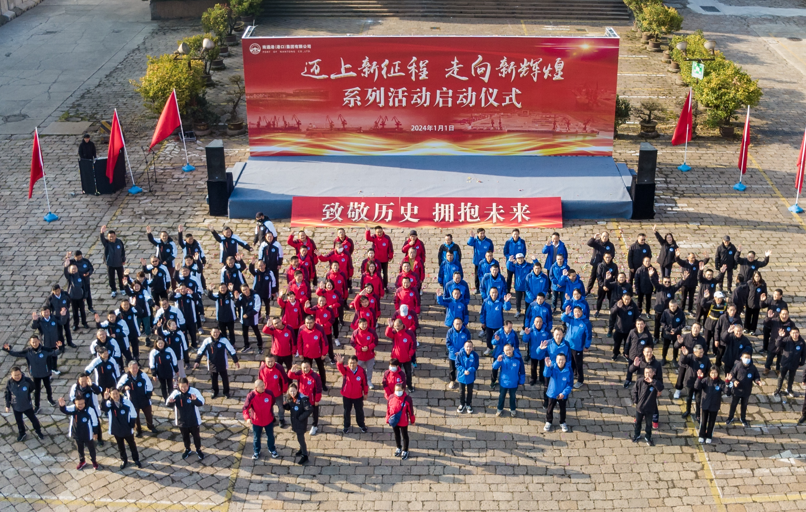 為深入貫徹落實黨的二十大精神,進一步凝聚廣大職工團結(jié)奮進力量。元月1日上午,集團“邁上新征程 走向新輝煌”系列活動啟動儀式在通州港務(wù)分公司鐘樓廣場舉行。集團領(lǐng)導(dǎo)班子成員、各部門以及基層單位負責人和部分職工近130人參加了活動。