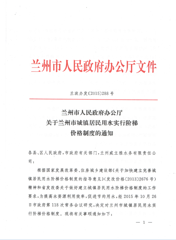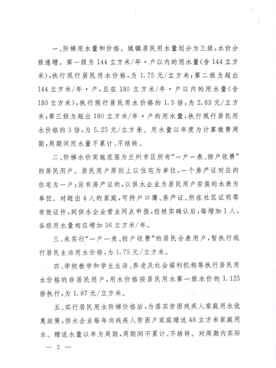 蘭州市用水性質(zhì)分類和水價